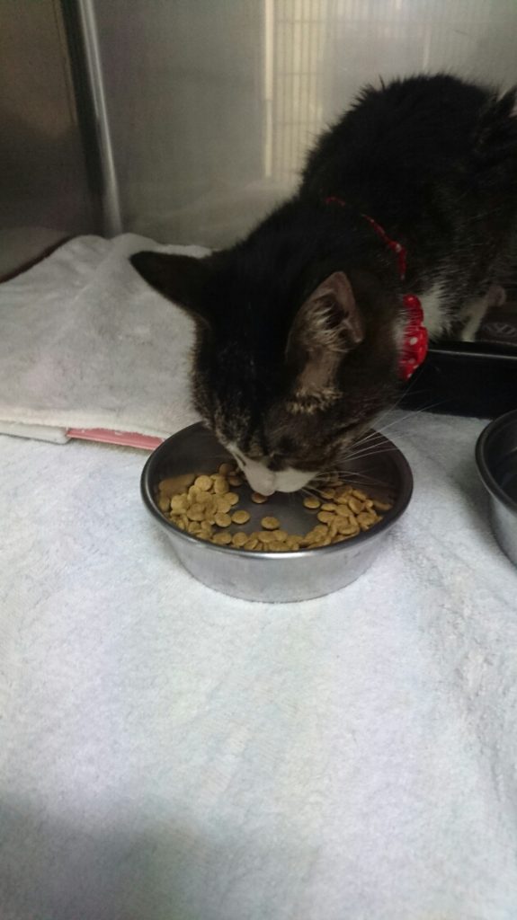 ゆずちゃん夜の様子です! 夜ご飯を置くと待っていたかのように 食べてくれます(^^♪ 一度に全部は食べませんが、ちょこちょこ食べてくれているみたいです☆ はやくお家に帰れるように頑張ろうね!!