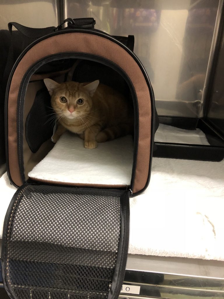 来てすぐは、緊張気味でしたので、慣れるまではバッグの中で様子を見ています。