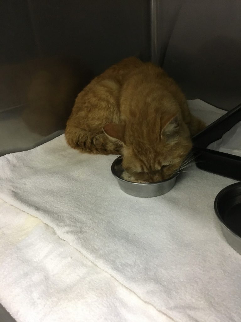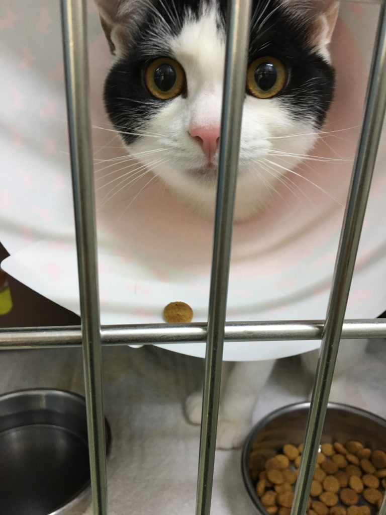 傷の消毒、注射の後、ご飯を食べてくれました。