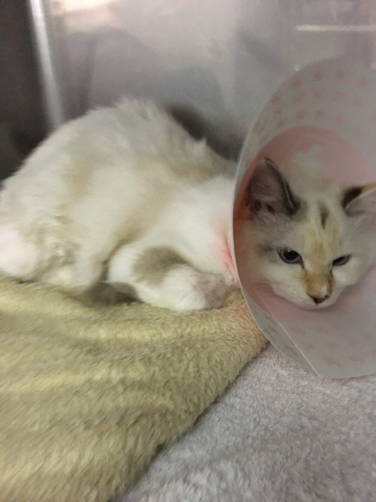 手術後のお写真です。 エリザベスカラーも嫌がることもなく、おとなしくしてくれています。