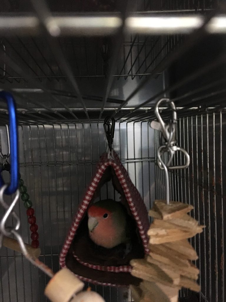 ケージ内を清掃中です。 良い子で待機してます。