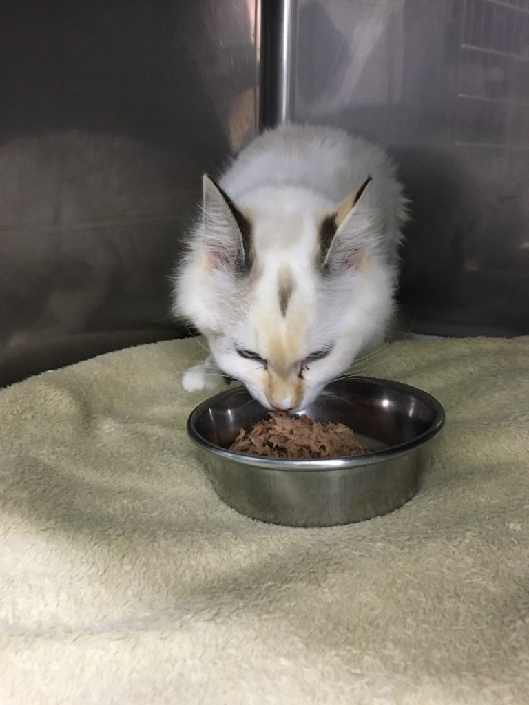 手術後、初のゴハンは、ウエットフードです、しっかり食べてくれました。