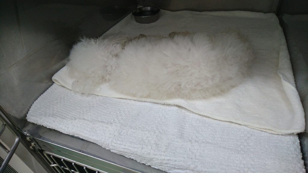 ラッキーちゃん本日からホテルお泊まりです! 背を向けたままですのでお顔が分かりませんが… 良い気持ちで寝ています(^^♪