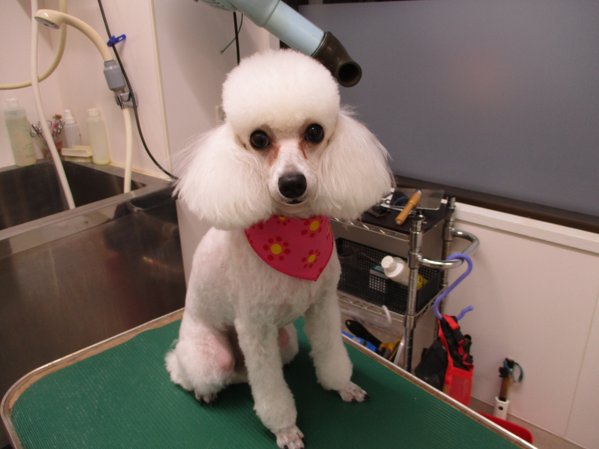 トイプードルのティアラちゃんです✨ お写真は、シャンプー前とトリミング後の時のものです♬ 今回もとってもお利口さんで、懐っこいティアラちゃんでした💛 カットは、夏に向けてのサマーカットでさっぱりとした感じに仕上がりました(*’ω’*)☆
