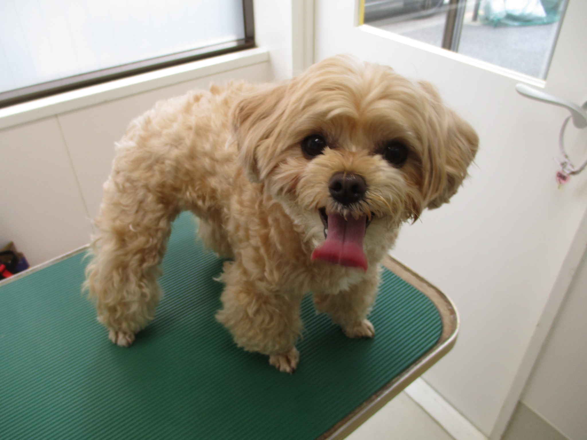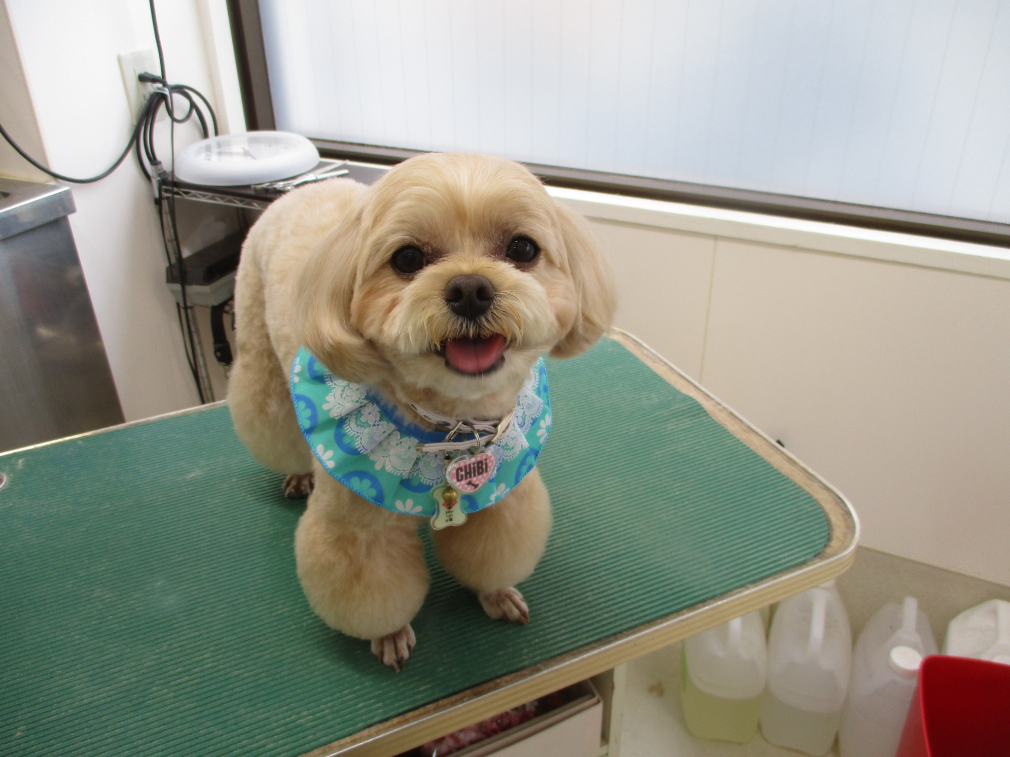 Mix犬のチビちゃんです✨ 今回もとってもお利口さんで、最後まで大人しく頑張ってくれていました(#^.^#)💛 カットは、夏に向けていつもよりか少し短めのサマーカットに仕上げてあります♪ フリフリのバンダナもチビちゃんにお似合いですね☆彡