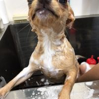 シャンプーの時のお手手ぐーに少しの緊張感があって